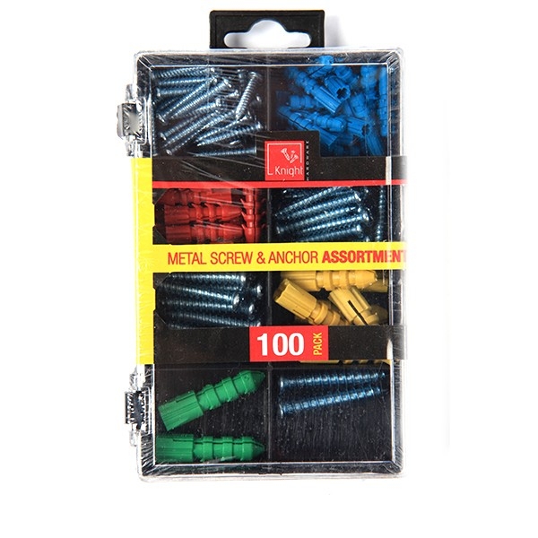 100pc Metal Screw & Anchor Asstd