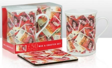 Fifty Pound Note Mug And Coaster Set