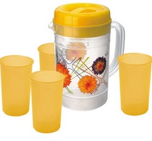 Printed Jug & Lid + 4 Glasses