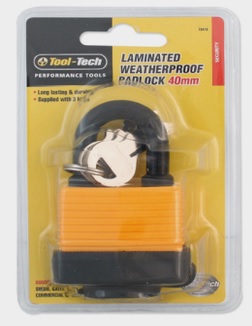 Tool-Tech Laminated Weatherproof Padlock 40mm