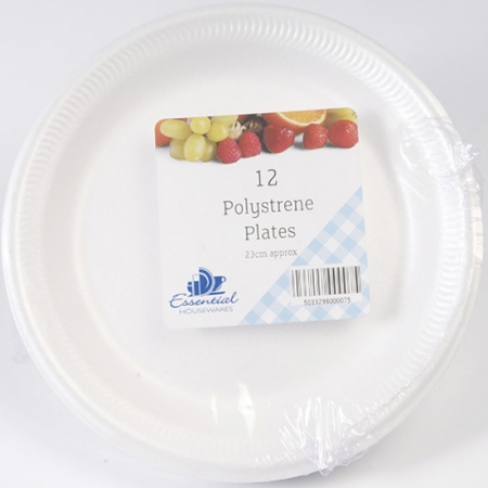 23cm Polystyrene Plates - Pk12